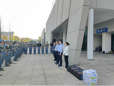 2023年10月23日下午,云顶7610线路检测党委书记胡平安、党委副书记唐媛、副院长阳国平、副院长曹东升和学工办主任桂玲智等一行,来到新校区军训场看望慰问2023级参训新生和承训教官,并送上慰问物资。