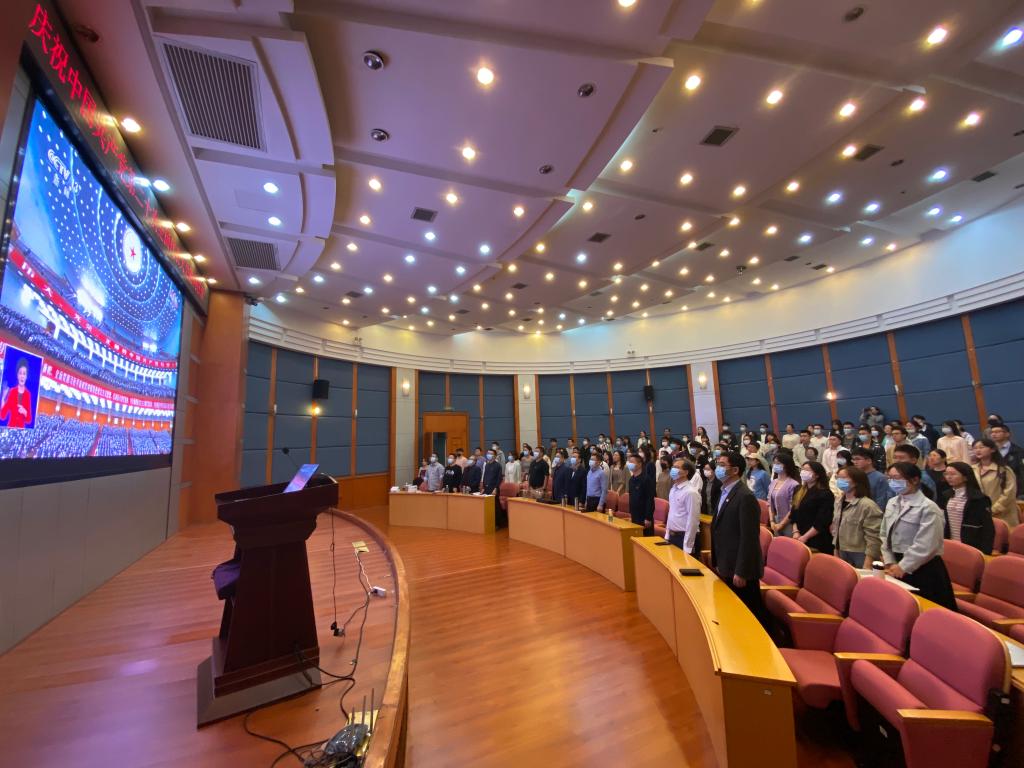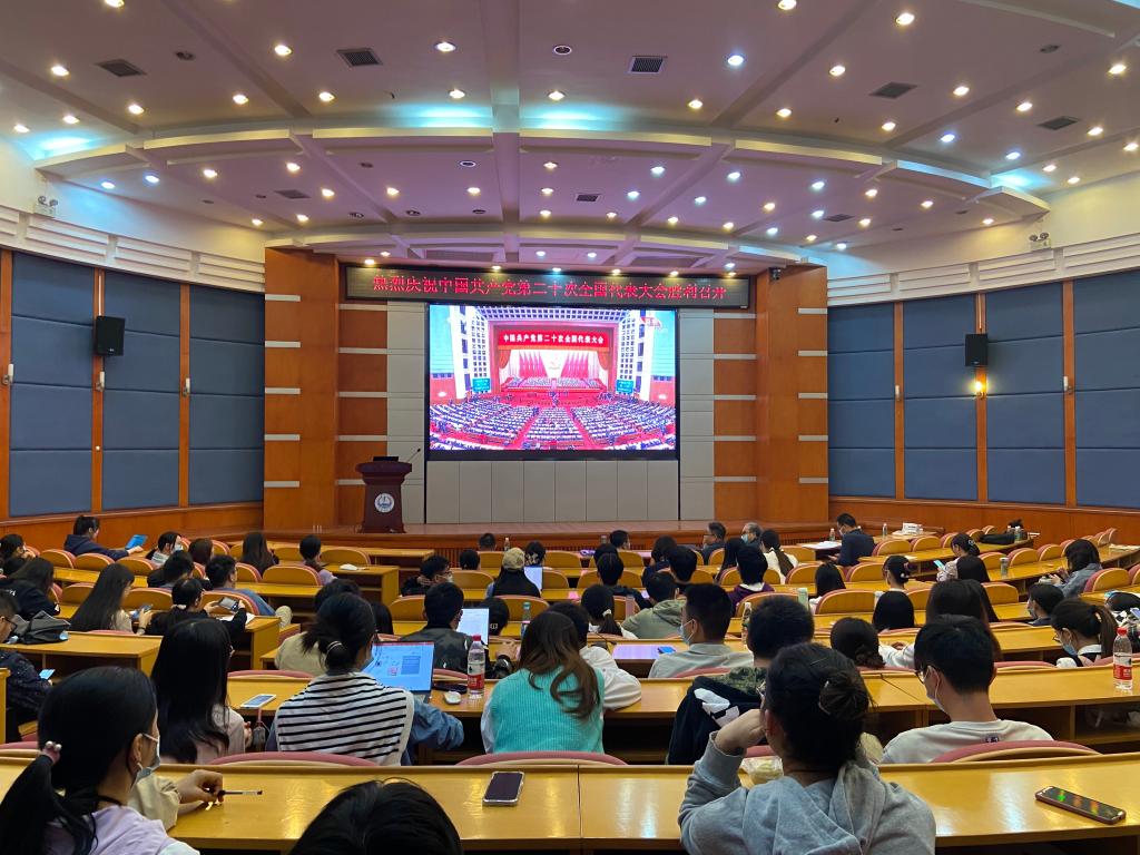 10月16日上午,中国共产党第二十次全国代表大会在北京人民大会堂开幕,习近平总书记代表第十九届中央委员会向大会作报告。云顶7610线路检测组织师生党员在福庆楼4楼学术报告厅集中收看党的二十大开幕式实况直播。在观看现场,师生边看边做好记录,不时响起热烈的掌声。观看结束后,师生党员以交流会、撰写心得等形式交流学习体会。