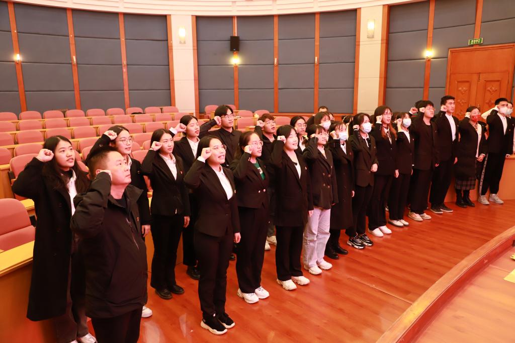 其后,学院党委副书记王昊主持预备党员培训。在庄严肃穆的奏唱《国际歌》仪式后,王昊副书记宣读了参与入党宣誓仪式的预备党员名单,并带领全体预备党员,面向党旗,进行神圣的入党宣誓。宣誓完毕,预备党员代表苗晨曦、老党员代表杨德仪分别作了发言,表达了对党的深厚感情和为党的事业奋斗终身的决心。