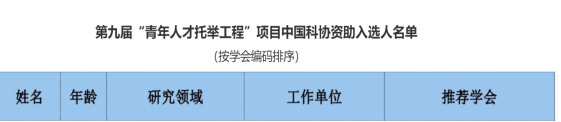 “中国科协青年人才托举工程项目”是中国科协于2015年10月设立的国家级青年人才计划,由中国科协所属全国学会或学会联合体具体实施,至今已连续开展九届评选工作。项目通过大力扶持有较大创新能力和发展潜力的 32 岁以下青年科技人才,助力青年科技人才在创造力黄金时期做出突出业绩,成长为国家主要科技领域高层次领军人才和高水平创新团队的重要后备力量。