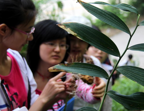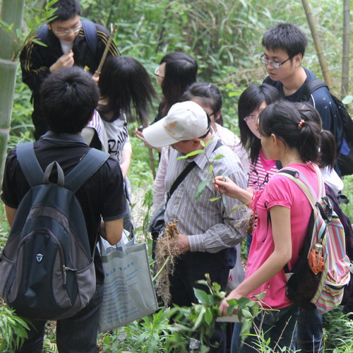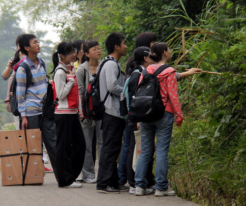 7、围观,雷老师在给学生讲野外作业防蛇经验。
