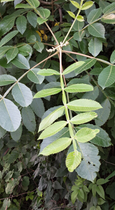 盐肤木(叶间有翼),其叶子上因五倍子蚜虫寄生形成的虫瘿即为著名中药:“五倍子”。