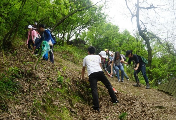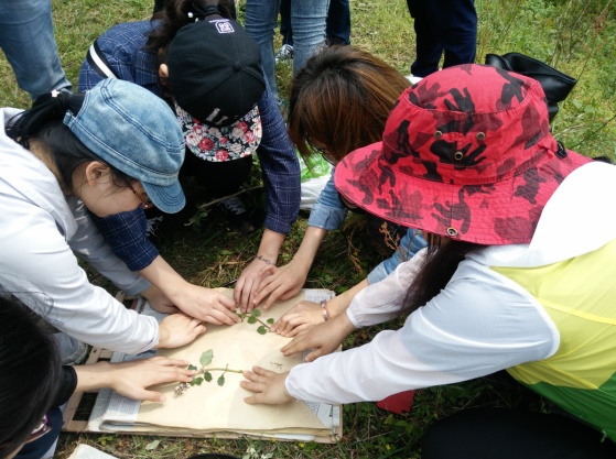 由于种种原因,我们的见习提前到了四月十六号。这天天气晴朗,温度适宜,是一个十分适合户外活动的日子。每个班级都被分为了两大组,每组由两名老师带队,前一天我们小组开小会议分配了任务,仅有的几位男生主动承担了安全员、采集员和后勤员的工作。见习当天大家都按照之前老师们的嘱托穿了长衣长袖、方便的鞋子及遮阳帽,带上了午餐的干粮和水,尽量轻便出行,我们的目的地是黑麋峰国家森林公园。