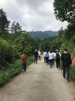 为了要避免意外和更好的感受大自然,我们这次选择了沿梵音古道进行学习,由于教学基地在衡山山上,尤其是第一天背着行李走上山前往基地的路途比较遥远,可能那时未能适应山路的崎岖,我觉得那一段路途真的比较艰苦,加上生活条件亦未如人意,所以这次实习也很考验我的体力和意志力。实习过程中,可惜天公不作美,天气比较不稳定,时而阴雨连绵,时而阳光猛烈。虽然大家都又累又热又衣服湿透,老师更为甚者,除了要照顾和讲授知识,还要身体力行去采摘植物给我们观察。但是古道沿途山色秀丽,风景怡人,我们参观了忠烈祠、麻姑仙境、梵音谷、华严湖、灵芝泉、玄都观等景观,每次看到如此美境时,身体的疲惫都会顿然消失一会,觉得先前辛苦都是值得的。