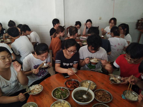 基地伙食:七菜一汤。味道有点淡、份量不太足,所以不下饭,对于外出爬了一天山的孩子们来说,是有可能吃不饱,看来下次考察除了卫生条件外的另一考察重点:伙食的味道和份量。