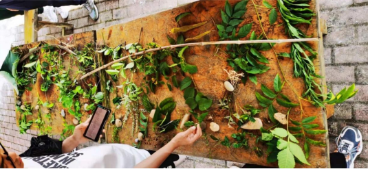 图2:邓旭老师(右一)为同学们介绍药用植物